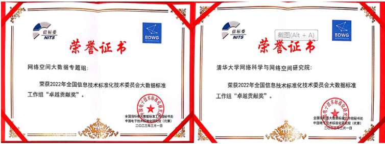 8xbet(中国)网3月23日电 3月9日,2023全国大数据标准化工作会议暨全国信标委大数据标准工作组第九次全会在广州召开。网络研究院作为“网络空间大数据标准专题组”组长单位,荣获2022年度全国信息技术标准化技术委员会(以下简称“全国信标委”)大数据标准工作组“卓越贡献奖”和“成员单位卓越贡献奖”,专题组成员、网络研究院博士生庄姝颖获得2022年度“个人卓越贡献奖”。