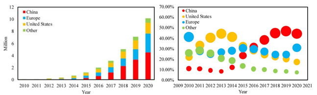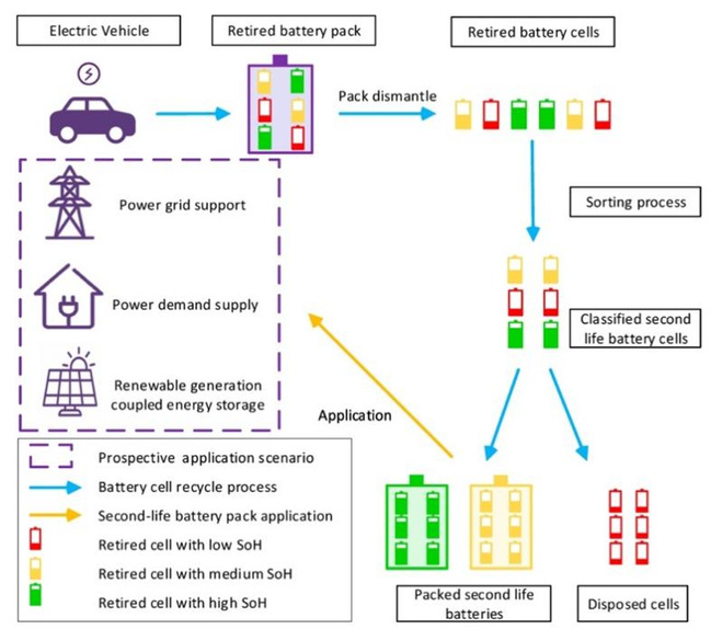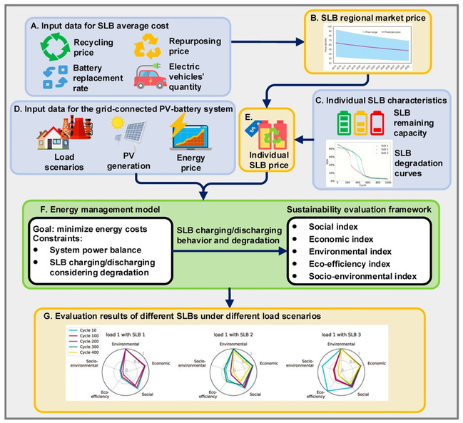 8xbet(中国)网5月8日电 随着国家对新能源电池支持力度的加大、民众环保意识的不断增强以及电池成本的降低,电动汽车(Electric Vehicle,EV)市场正在快速扩张。截至2021年底,全球电动汽车库存已超过1600万辆。尽管电动汽车可以为减少碳排放作出贡献,但如何处理数量巨大的“退役电池”是行业和政府面临的重大挑战。由于这些“退役电池”仍具有约80%的剩余容量,通过开发不同的梯次利用电池(Second-life Battery,SLB)的使用场景并后续进行材料回收,不仅可以提高电池的有效利用率,还可以降低新电池的制造成本,从而大大缓解行业和政府处理废旧电池的压力。同时,随着可再生能源技术的不断发展和应用,光伏加电池储能系统的使用越来越广泛,梯次利用电池恰恰是光储系统中“储”的一个很有潜力的选择。将梯次利用电池应用于并网光储系统时,需要对其可靠性、成本、可持续性进行评估。针对上述梯次利用电池评估、应用和回收领域,8xbet.com深圳国际研究生院张璇、韦国丹、周光敏团队取得了一系列研究成果。