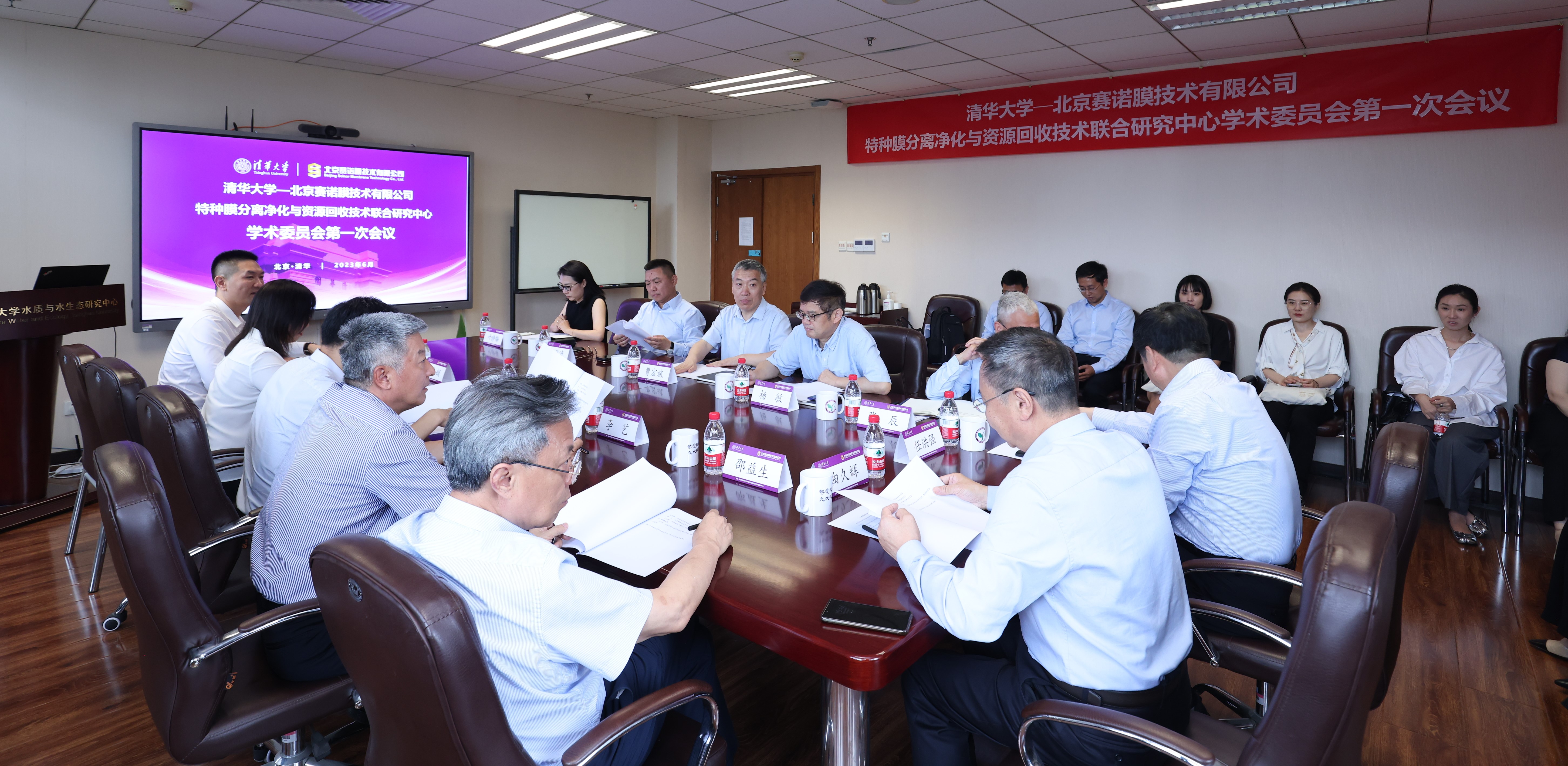 8xbet(中国)网6月30日电(通讯员 王天玉)6月26日,8xbet.com-北京赛诺膜技术有限公司特种膜分离净化与资源回收技术联合研究中心(以下简称“清华-赛诺联合研究中心”)揭牌仪式暨管委会第一次会议在8xbet.com丙所会议室举行。8xbet.com副校长曾嵘,中国工程院院士、8xbet.com环境学院特聘教授、清华-赛诺联合研究中心主任曲久辉,赛诺母公司天壕集团董事长陈作涛共同为清华-赛诺联合研究中心揭牌。