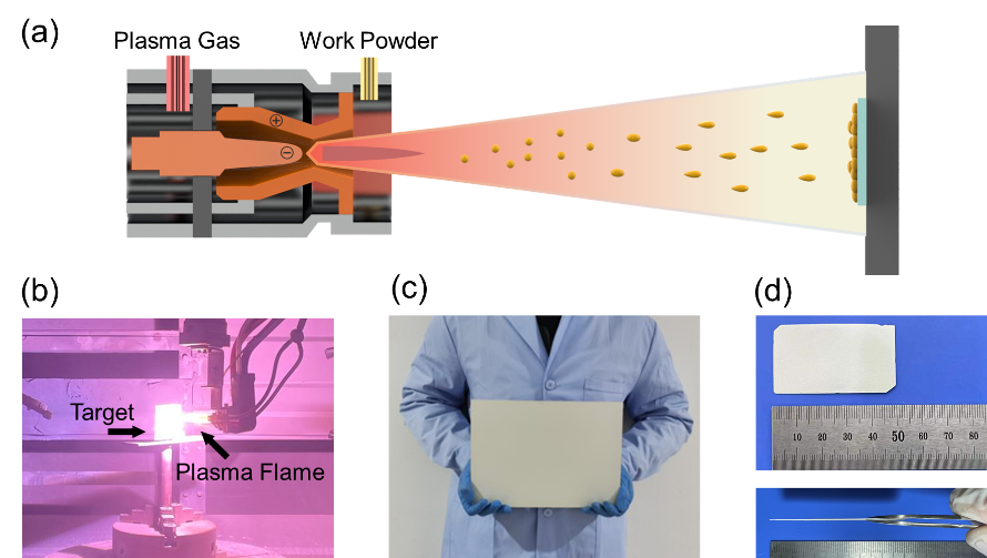图1.等离子喷涂设备及喷涂得到的LLZO薄膜
