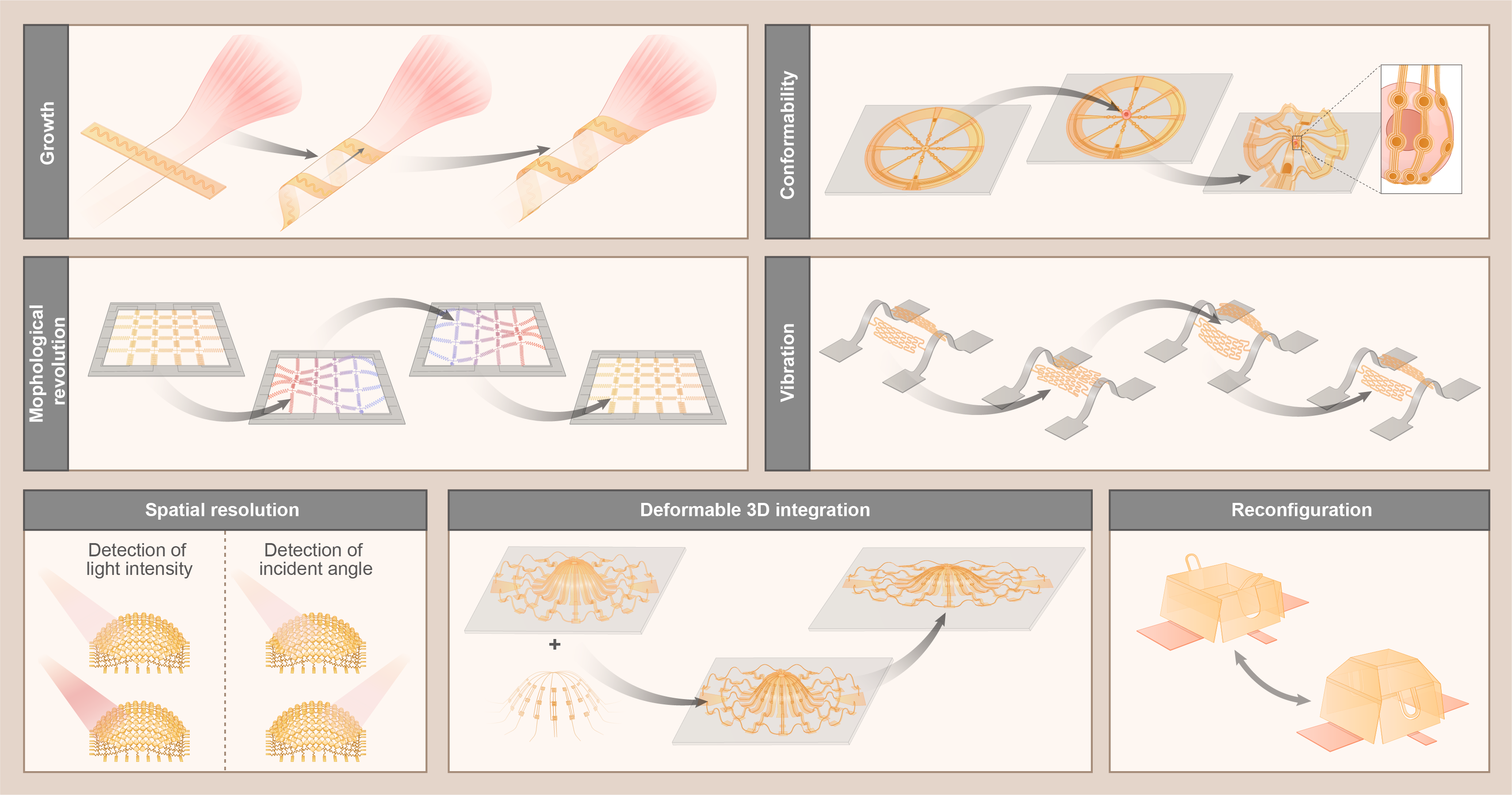 图2.三维柔性电子器件的结构性功能