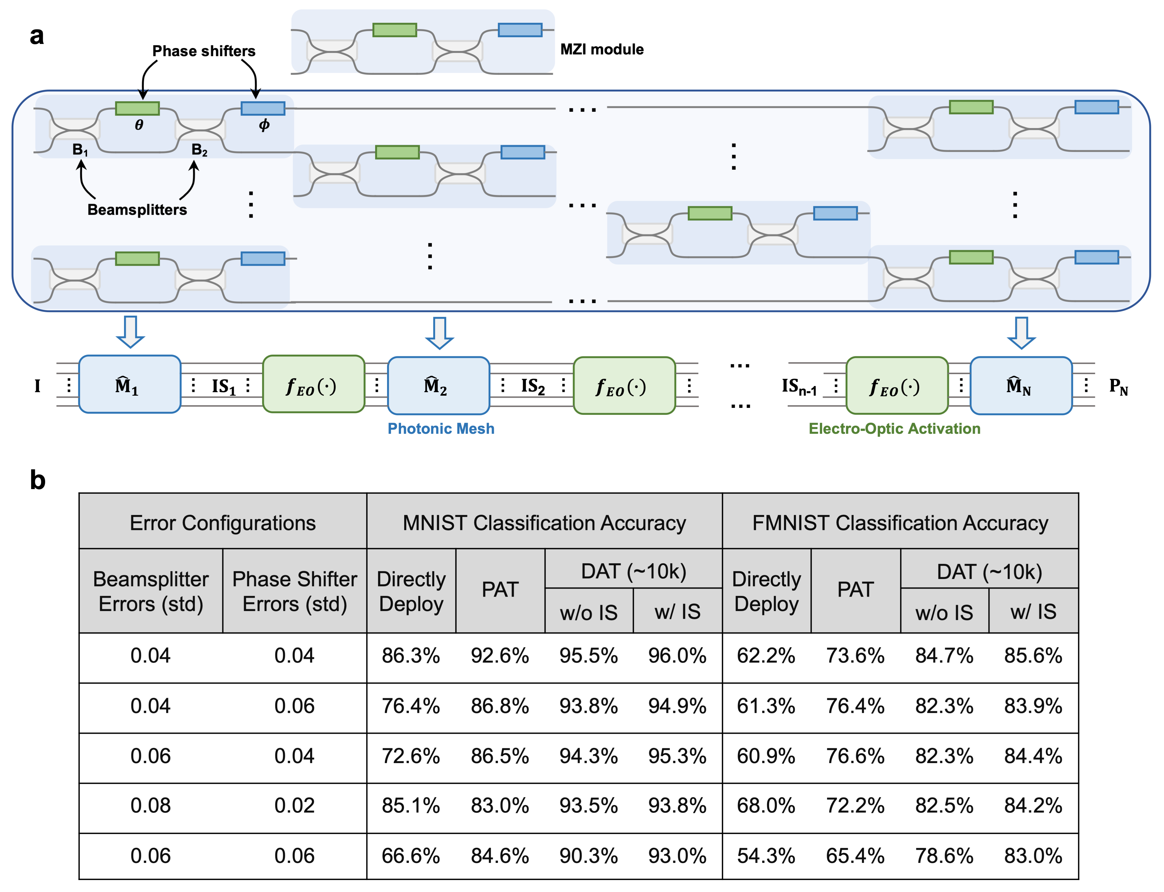 近日,该研究成果以“光子神经网络的对偶自适应训练”(Dual Adaptive Training of Photonic Neural Networks)为题发表在《自然·机器智能》(Nature Machine Intelligence)上。