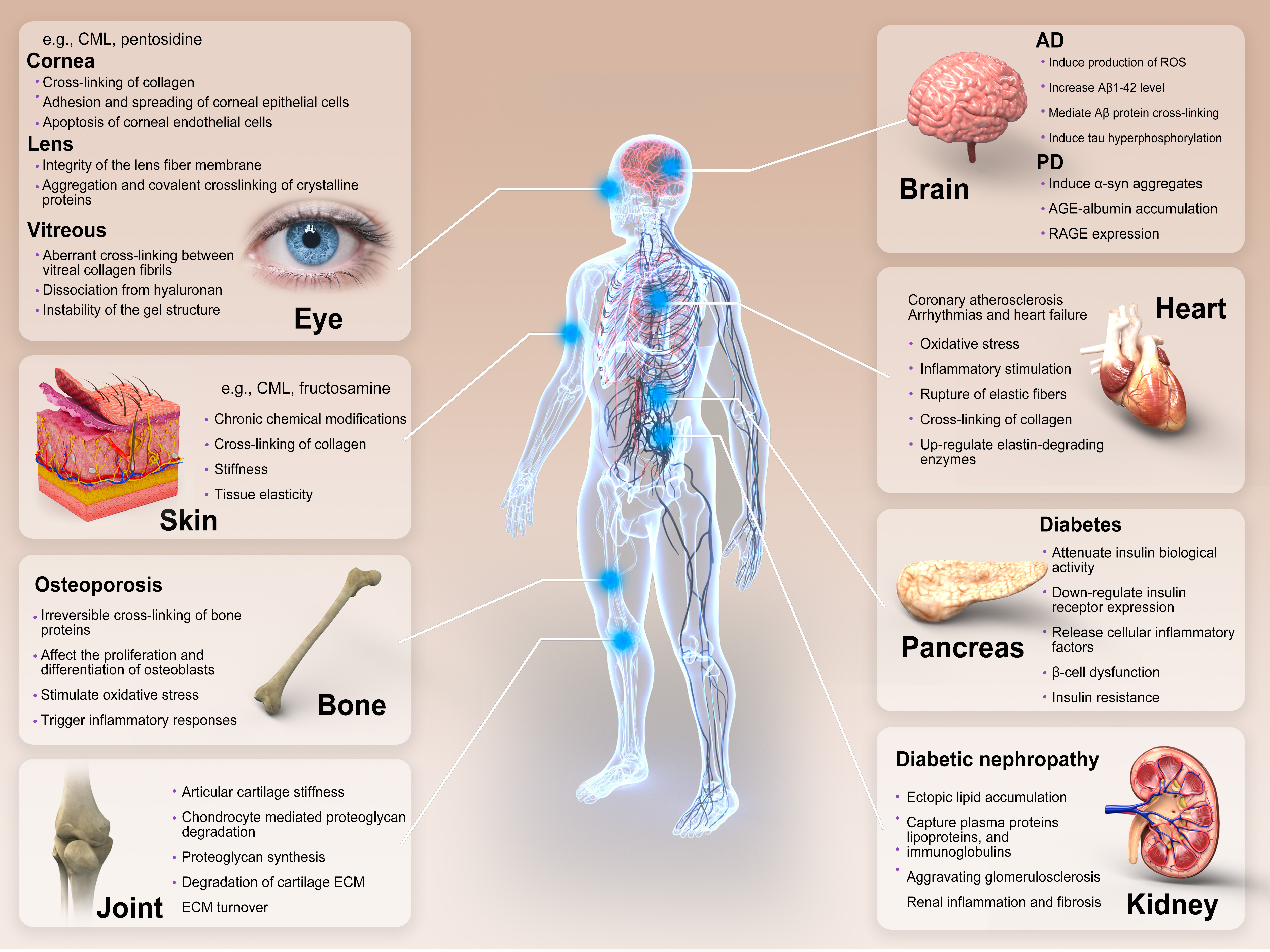 图4.AGEs加速衰老及相关疾病的机制