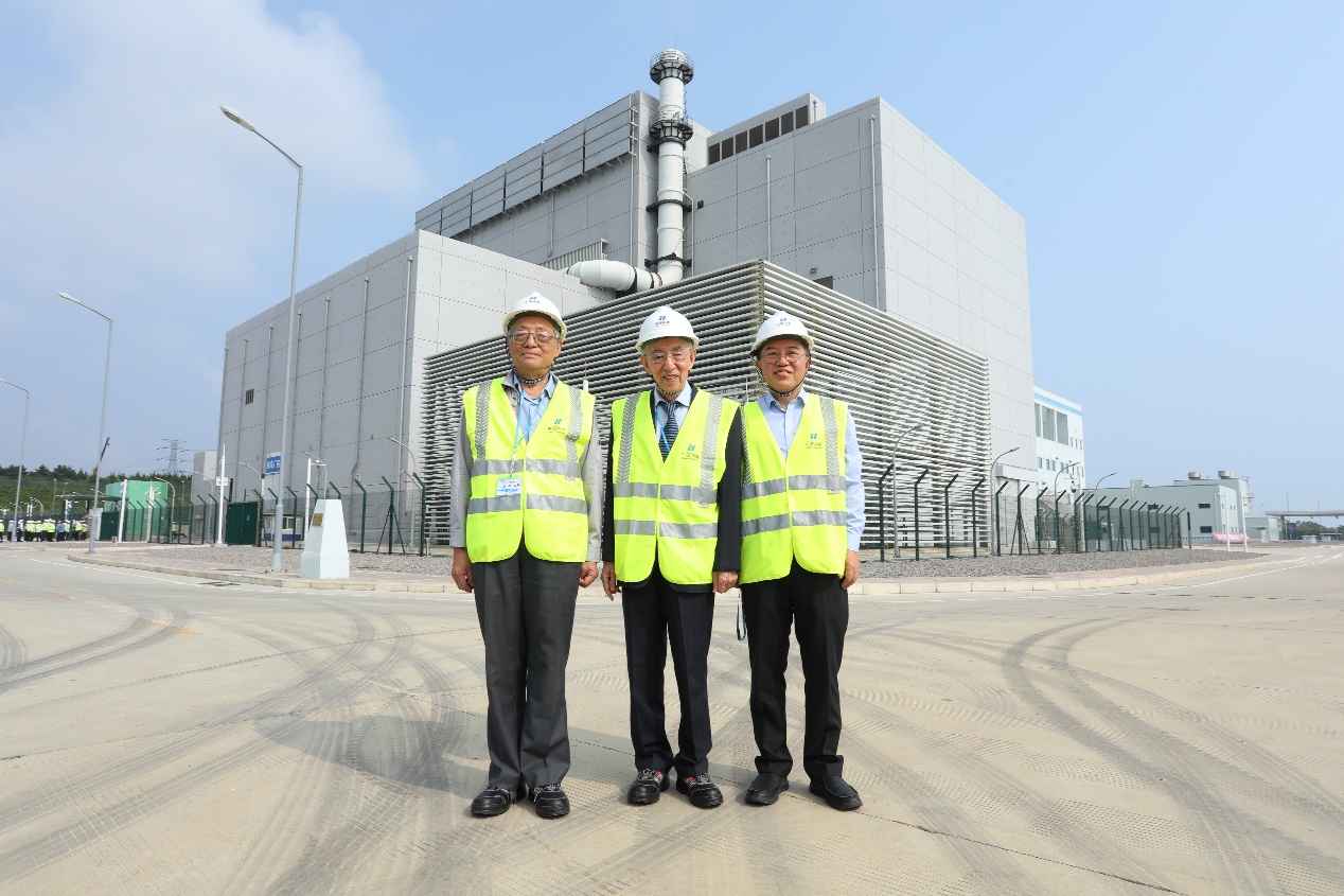 2021年9月,吴宗鑫(左)、王大中(中)、张作义(右)在石岛湾高温气冷堆示范工程现场