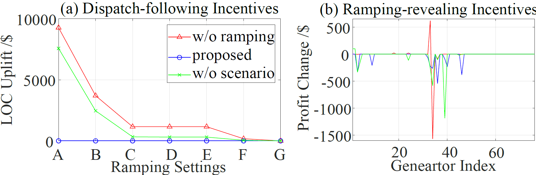 在此基础上,考虑到多时段下电能量与备用在机组爬坡能力方面具有的耦合关系,针对传统电能量与备用一致性定价下可能导致的机组欠补偿问题,团队进一步建立了电能量与备用的多时段联合滚动出清框架,创造性地提出了电能量与备用的准一致性边际定价,突破了传统一致性定价理论的思维局限,揭示了电能量与备用这两种商品所具有的同-异质性,解决了传统一致性定价下机组激励不相容的问题,保证了多时段下的全局市场均衡与机组的成本回收、诚实申报。