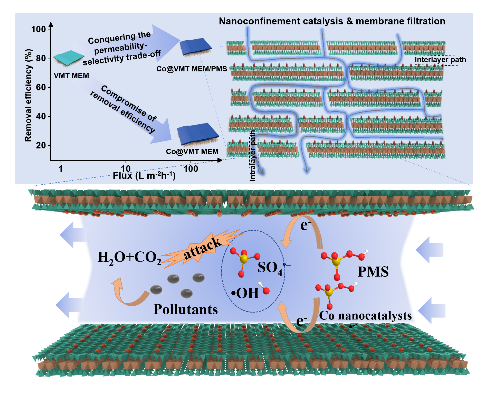 该研究以“2D Co功能化蛭石膜用于突破膜法水处理渗透性与选择性的‘权衡’效应”(Overcoming the permeability-selectivity challenge in water purification using two-dimensional cobalt-functionalized vermiculite membrane)为题,在线发表在《自然·通讯》(Nature Communications)上。