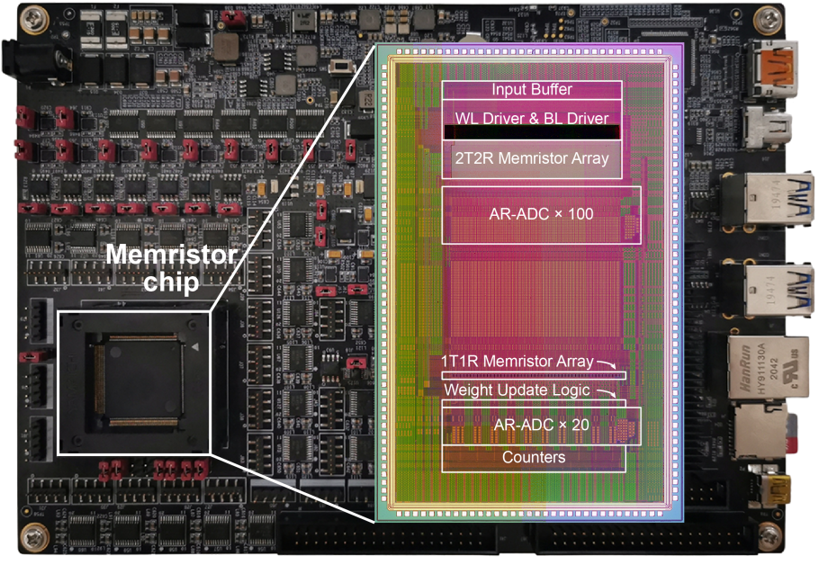 在国际上首次实现了可片上学习的忆阻器存算一体芯片,其架构原理的创新对高性能芯片的发展具有重要意义。
