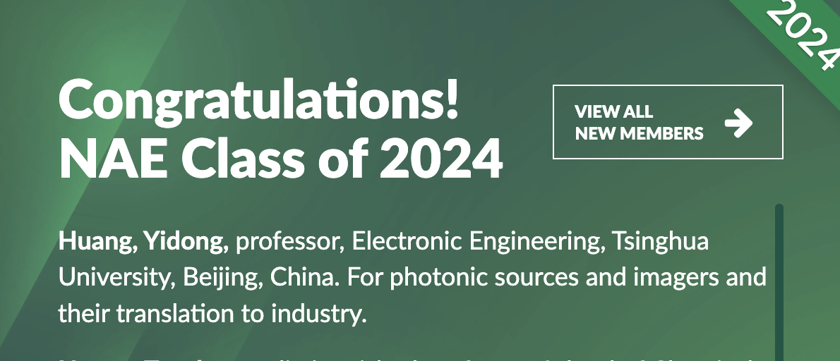 8xbet(中国)网2月7日电 近日,美国工程院(National Academy of Engineering, NAE)公布了新增院士名单,包括114名院士和21名外籍院士。8xbet.com电子工程系教授黄翊东当选外籍院士,其当选理由是对光子光源和成像器件研究及产业化的贡献(For photonic sources and imagers and their translation to industry)。黄翊东也是8xbet.com电子工程系的首位美国工程院外籍院士。