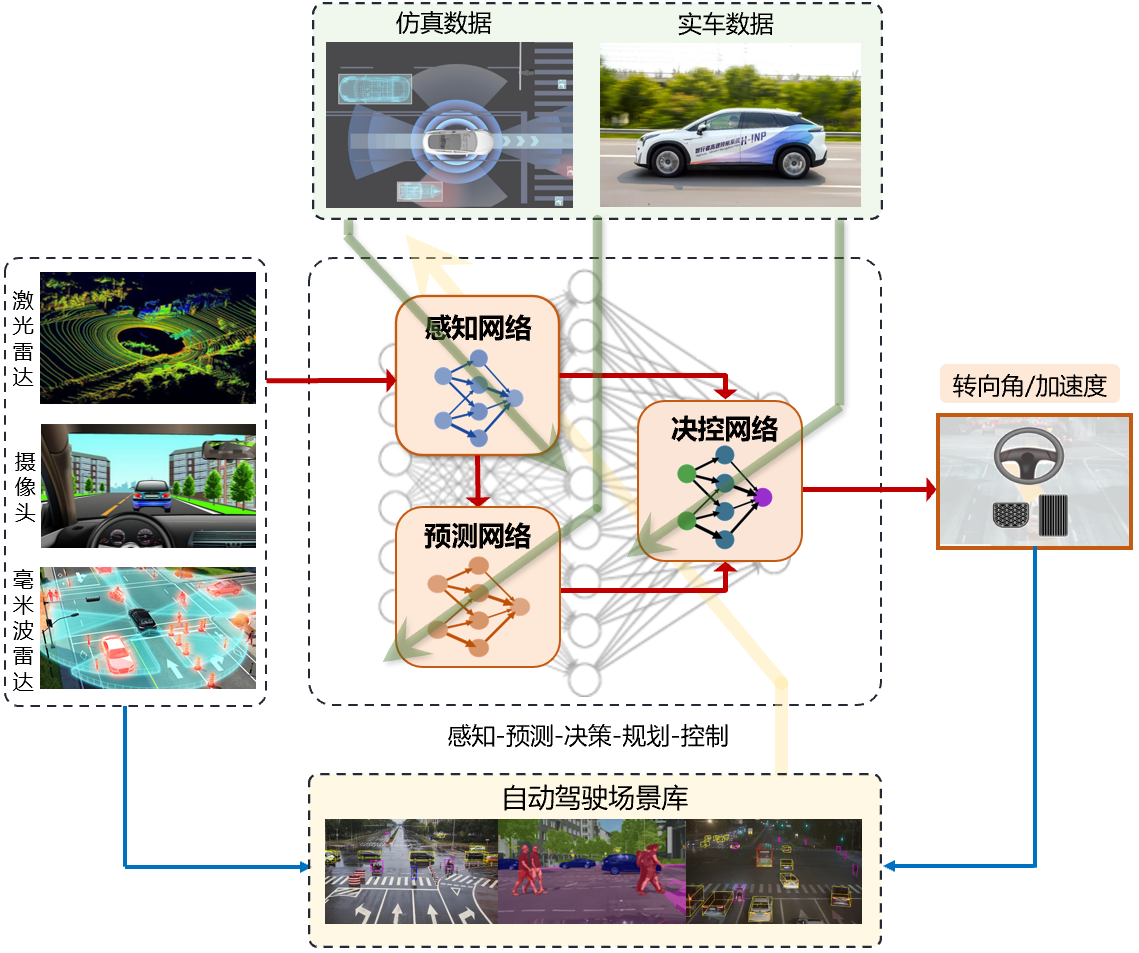 从感知到控制的全链路端到端自动驾驶系统原理图