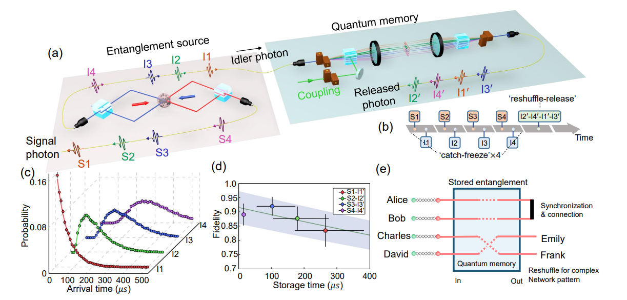 最后,本工作展示了连续四个随机产生的纠缠光子对的存储、同步,以及交换顺序的输出。这对于量子中继以及量子路由器的实现至关重要。
