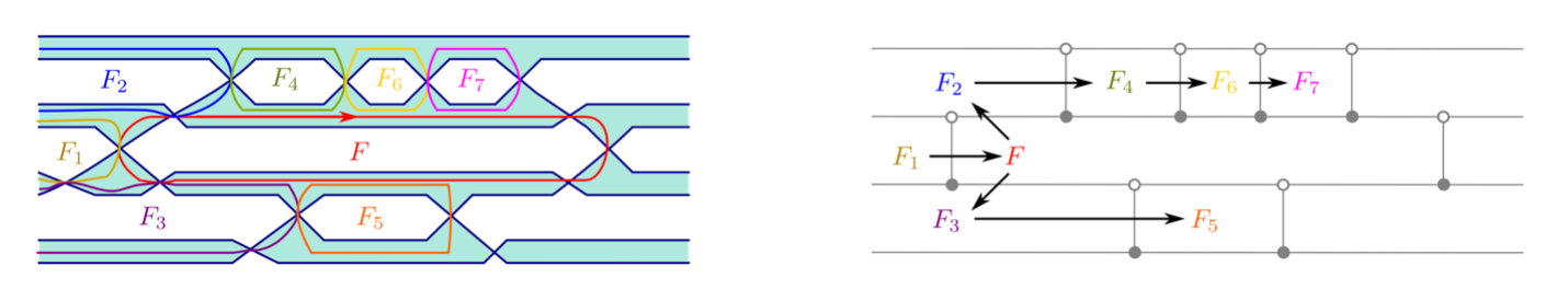 而在最新进展中,研究团队进一步证实了拉格朗日填充与丛代数种子之间潜在的对应关系。固定一个勒让德链环,如果其不变量组成的模空间具有丛代数结构,根据辛场论的构造,则该链环所界定的一个恰当拉格朗日填充可以诱导一个丛代数种子。团队证明了以上对应中满射的部分,即每一个丛代数种子均由一个恰当拉格朗日填充诱导所得。