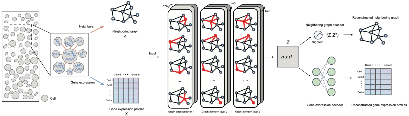 目前空间转录组数据分析面临以下两方面难题:第一,对于空间细胞类型的识别,许多研究仅使用细胞基因表达谱而忽视细胞的空间位置信息。然而,近年来的研究表明,原本被认为是同质性的细胞类型,根据其在组织中的位置,可以进一步细分为多个亚型。第二,对于组织模块的发现,当前的方法主要基于组织内区域的基因空间表达模式的一致性来发现组织模块。然而,构成组织的不同细胞的基因表达特征可能高度异质化,这些方法未能充分利用最新的单细胞分辨率的空间转录组数据中细胞类型的信息。