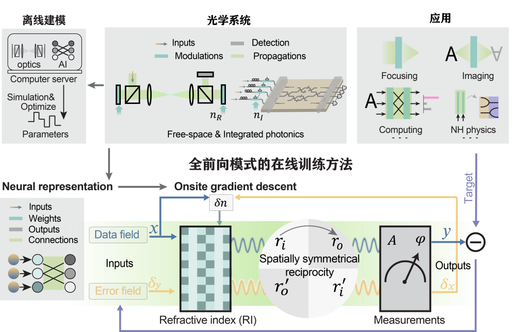 在这个时候,方璐、戴琼海课题组找到了“光子传播对称性”这把钥匙,将神经网络训练中的前向与反向传播都等效为光的前向传播。