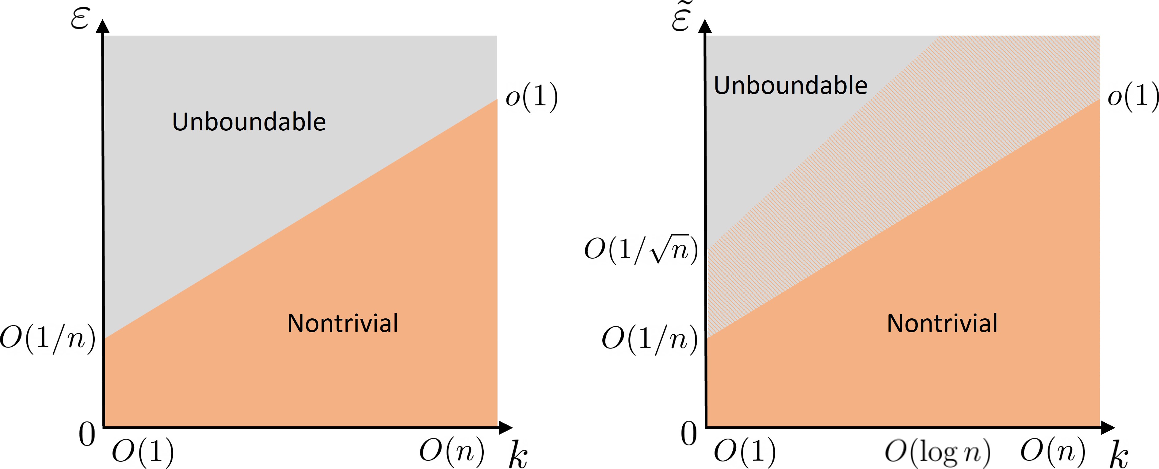 刘子文团队围绕近似量子纠错展开研究,引入了“子系统差异(subsystem variance)”这一新的编码性质,建立了近似量子纠错性质与电路复杂度之间严格的联系,并完成了数学理论的证明,揭示了近似量子纠错编码复杂性“相图”(如图所示),这一理论可广泛应用于数学构造编码、物理系统衍生编码等各类情形。