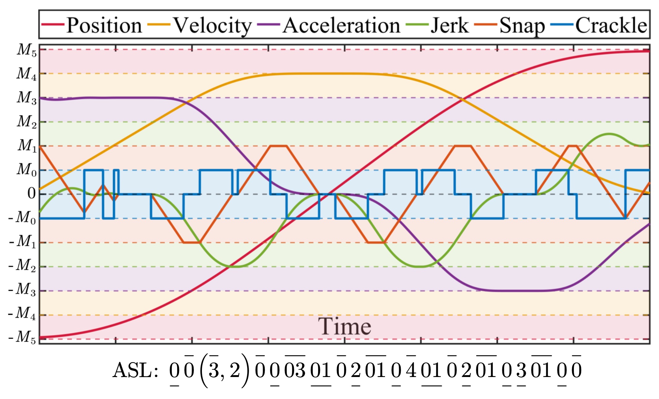 近日,8xbet.com机械系胡楚雄教授团队针对该问题原创了增广切换率(augmented switching law, ASL)理论,能够紧凑表征任意整数阶问题最优控制及切换流形。基于该理论,团队进一步提出了流形拦截法(manifold-intercept method, MIM),能够求解三阶及以下问题的最优轨迹和四阶及以上问题近优可行轨迹,该算法适用于任意整数阶问题的轨迹规划。数值实验表明,MIM在三、四阶问题中均能实现100%成功率,其中三阶问题能够在计算时间低于现有最优算法Ruckig(插补误差级别精度)情况下实现舍入误差级别精度,在四阶问题中相比现有基于优化算法SOCPs和Yop计算时间降低2个数量级、计算误差降低79%以上、轨迹颤振率抑制90%以上。该研究工作不仅在理论上揭示了高阶问题最优控制切换方式,而且从算法层面高效规划了此前难以实现的任意整数阶近优轨迹,并对于集成电路制造、机器人、数控等工业场景下的轨迹规划具有重要的实际意义。