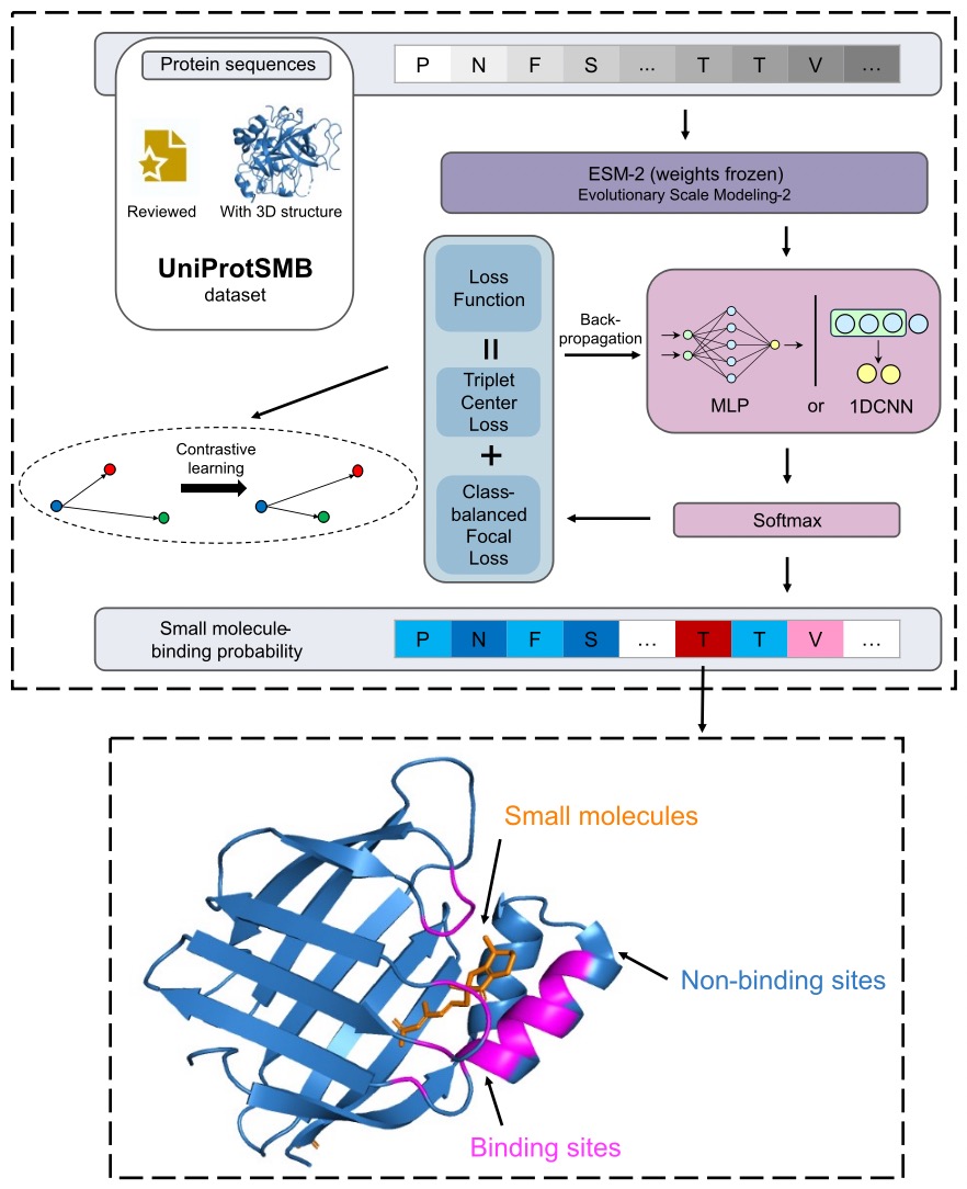 相关研究成果以“基于预训练蛋白质语言模型和对比学习的蛋白质-小分子结合位点预测”(Protein-small molecule binding site prediction based on a pre-trained protein language model with contrastive learning)为题,于11月6日发表于《化学信息学杂志》(Journal of Cheminformatics)。