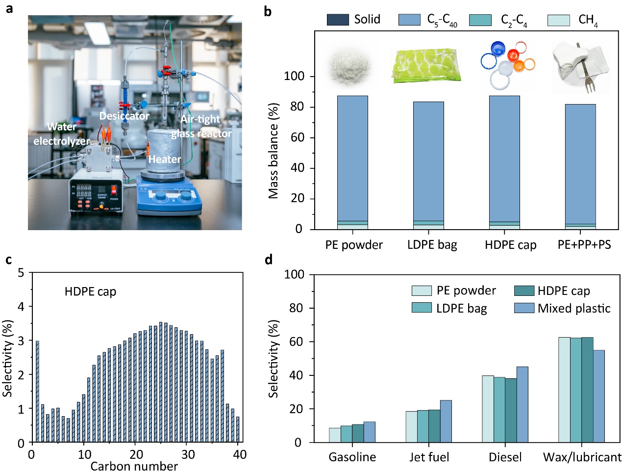 8xbet(中国)网12月10日电 废弃塑料的资源化利用是推进绿色低碳循环发展的重要举措。聚乙烯是全球需求量最多的通用塑料,每年消费量超过1亿吨。氢解可将聚乙烯选择性转化为高值液体燃料和化学品,但往往需要在较高的氢气压力下进行。