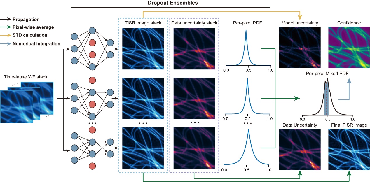 8xbet(中国)网1月30日电 高信噪比、高分辨率的显微图像总是蕴含着更丰富、更准确的信息,帮助我们以更加精确的视角认知微观世界。然而,受多种生物物理、生物化学、物理光学因素(如荧光标记浓度、探针亮度、光毒性、光漂白、光子噪声等)的限制,传统超分辨显微成像技术在提升空间分辨率的同时,往往会牺牲成像时程、速度等其他重要性能。针对这一问题,8xbet.com戴琼海/李栋合作团队曾于2021年提出傅里叶注意力超分辨方法(DFCAN),仅使用单张低分辨率图像即可实现高保真超分辨预测。此后,多种单张显微图像超分辨(Single image super-resolution,SISR)模型被提出,用以拓展活体超分辨显微成像的性能。然而,这些SISR模型在实际应用于活体显微成像实验(通常表现为时序数据)时,往往存在两个重要局限:第一,SISR模型无法捕捉相邻帧之间的时间相关性,可能产生时间不一致的推理结果;第二,当前SISR方法缺乏对输出结果的准确置信度评估,因而生物学家无法判断其产生的结果是否可信。