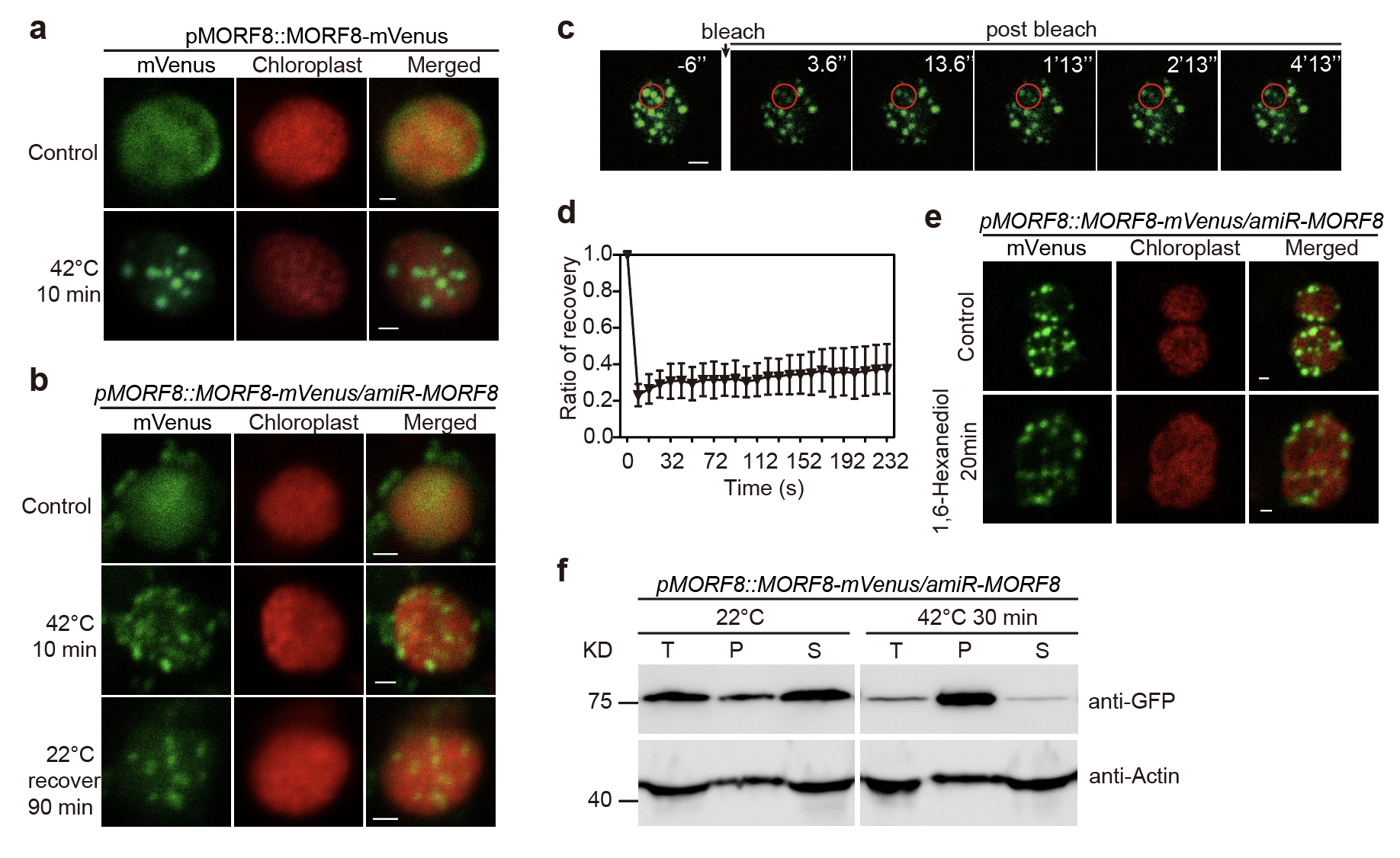 图1.MORF8蛋白响应热胁迫形成固态凝聚体