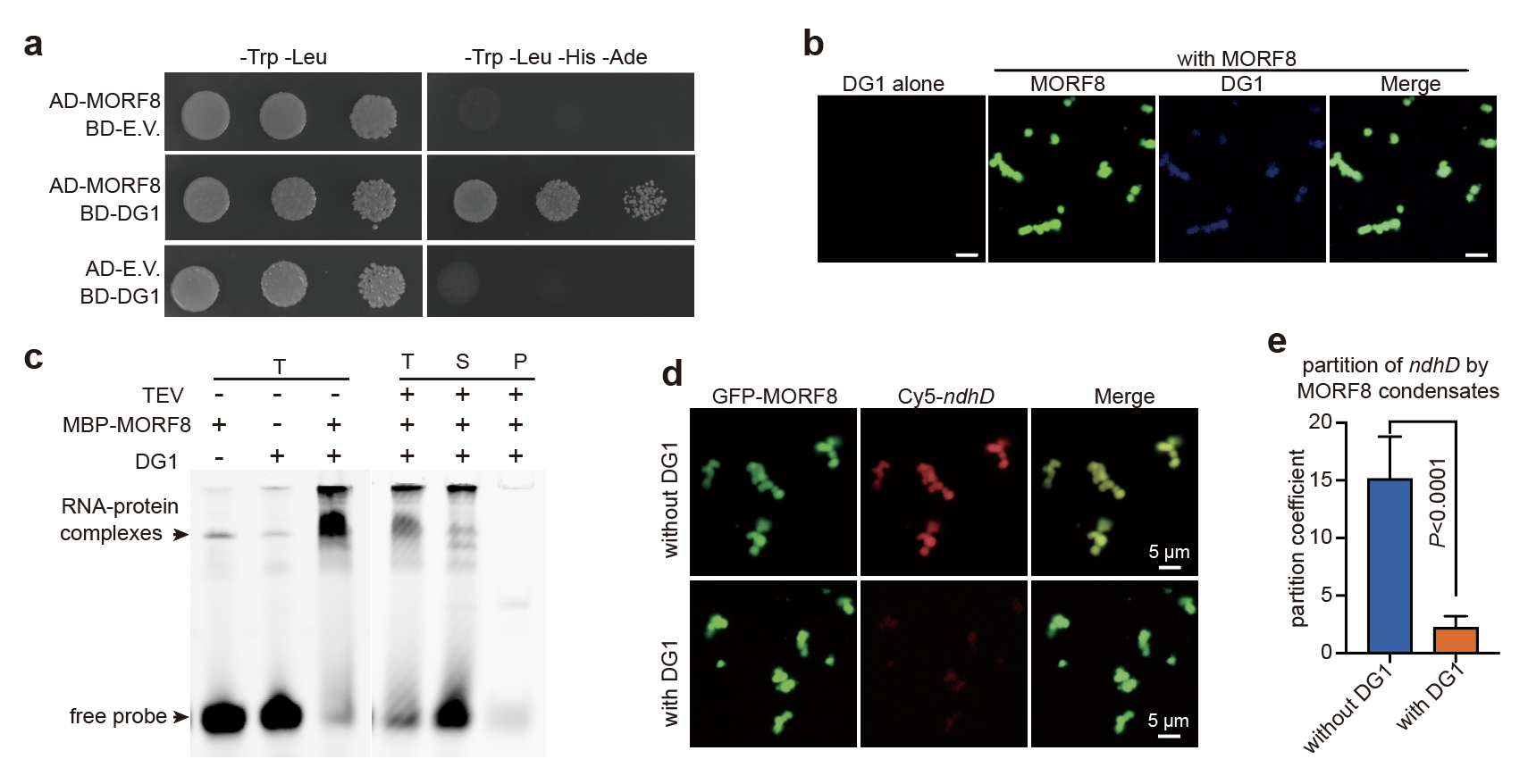 图2.MORF8蛋白凝聚体特异性招募PPR蛋白并抑制其RNA结合能力