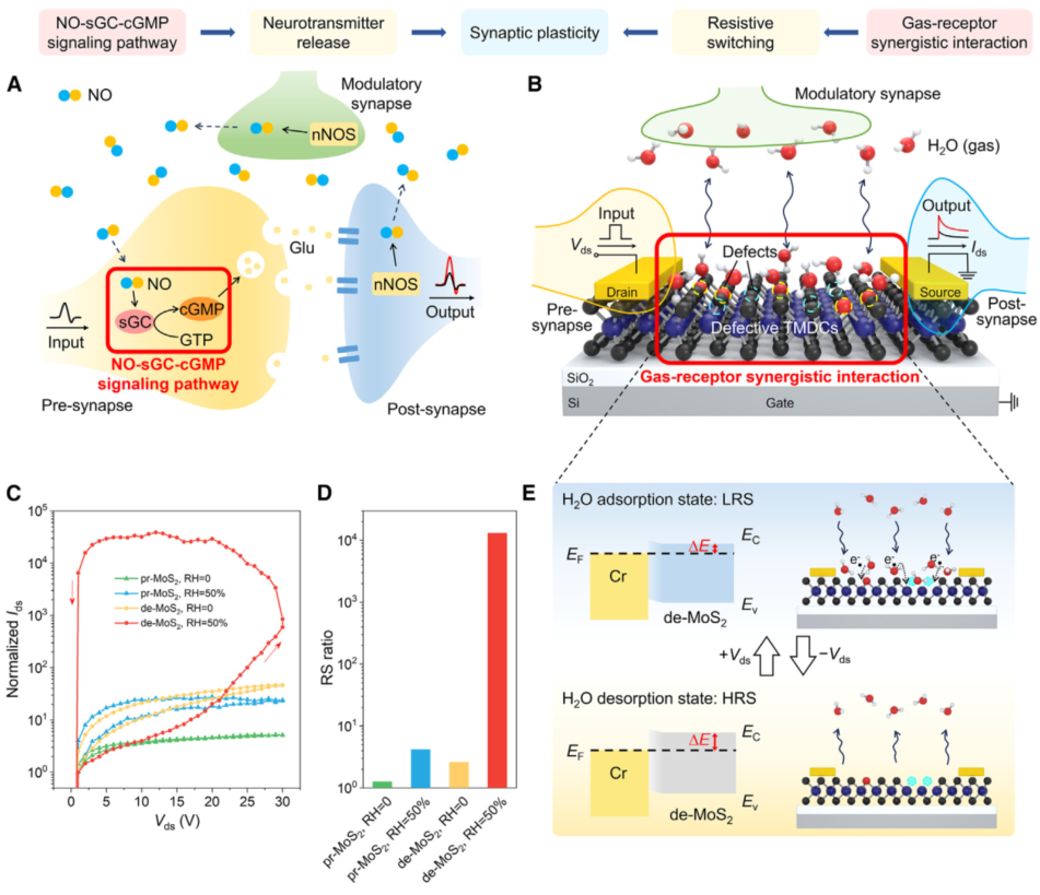 适用于二维TMDCs神经形态器件的气体-受体协同作用机制