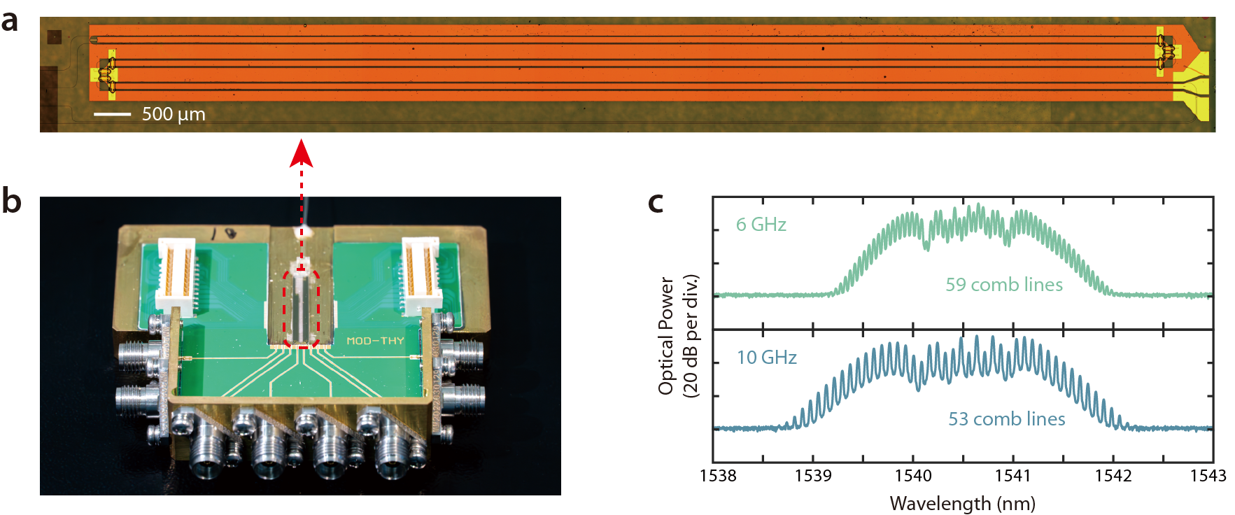 图2. 集成铌酸锂电光频梳