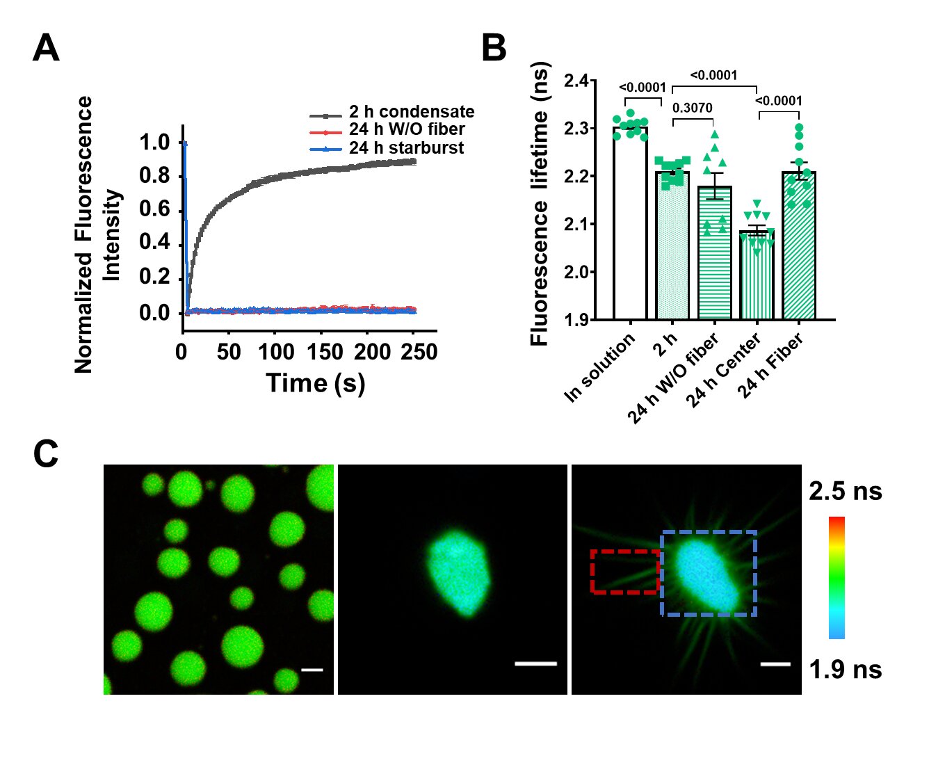 8xbet(中国)网4月3日电 在神经退行性疾病研究领域,科学家发现多种致病蛋白能够通过液液相分离机制形成动态的液态凝聚体。这些生物分子凝聚体会随着时间推移经历液-固相变过程,最终转化为病理性的固态聚集体。当前研究中广泛采用的FRAP(荧光漂白恢复)技术虽然能够有效评估液态凝聚体的流动性特征,但无法对流动性进行非破坏性的实时动态表征和可视化追踪,这一技术瓶颈在相关研究中普遍存在,亟待新型检测方法的突破。