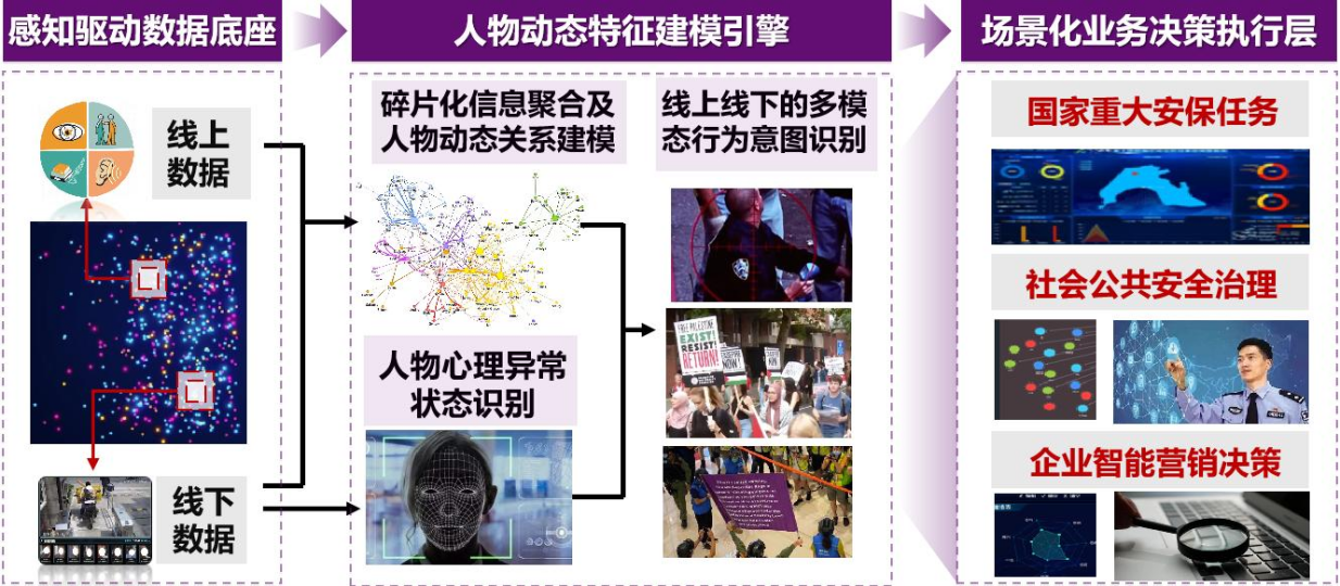 自动化系陶建华团队针对人物动态特征建模中跨域碎片化、心理状态易受干扰、行为意图难判定等技术难题,突破跨域实体高效关联、鲁棒心理状态识别和高性能行为意图识别等关键技术,研制了基于人物动态特征模型的行为分析系统,在保障公共安全和提升社会治安效率方面发挥重要价值。“跨域多模态人物动态特征建模关键技术及应用”成果获得2024年度中国电子学会技术发明一等奖。