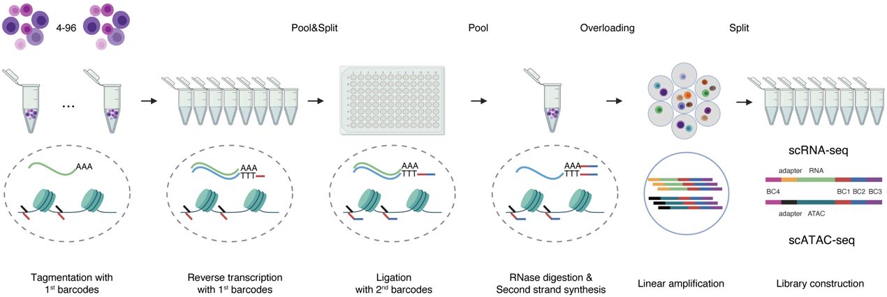 Parallel-seq结合组合索引与微液滴过载技术,同时测量同一个单细胞中染色质可及性和基因表达