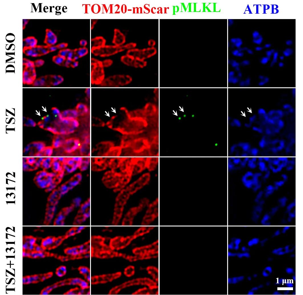 图1.寡聚pMLKL定位于线粒体外膜开口