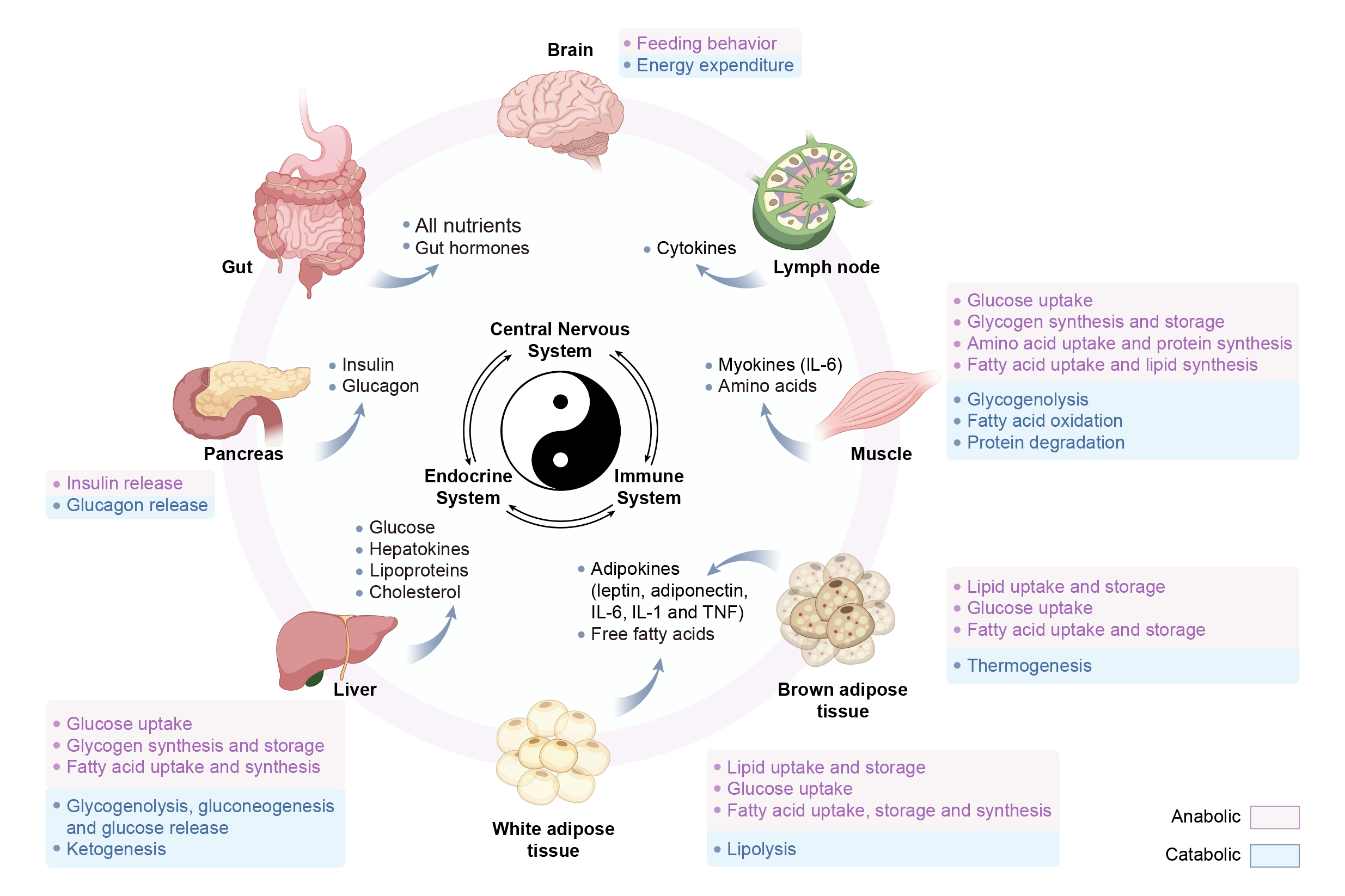 8xbet(中国)网8月19日电 代谢相关疾病(如肥胖、2型糖尿病、脂肪肝等)已成为威胁人类健康的主要慢性疾病之一。世界卫生组织预测,到2030年,全球糖尿病患者可能突破5亿。如何揭示机体在复杂环境下维持代谢稳态的机制,是国际医学研究的前沿问题。长期以来,研究者多聚焦于单一激素或分子通路,例如胰岛素、瘦素等,但这种“线性视角”难以解释代谢疾病的全貌。建立多系统协同作用的整合框架,已成为该领域亟需解决的科学挑战。