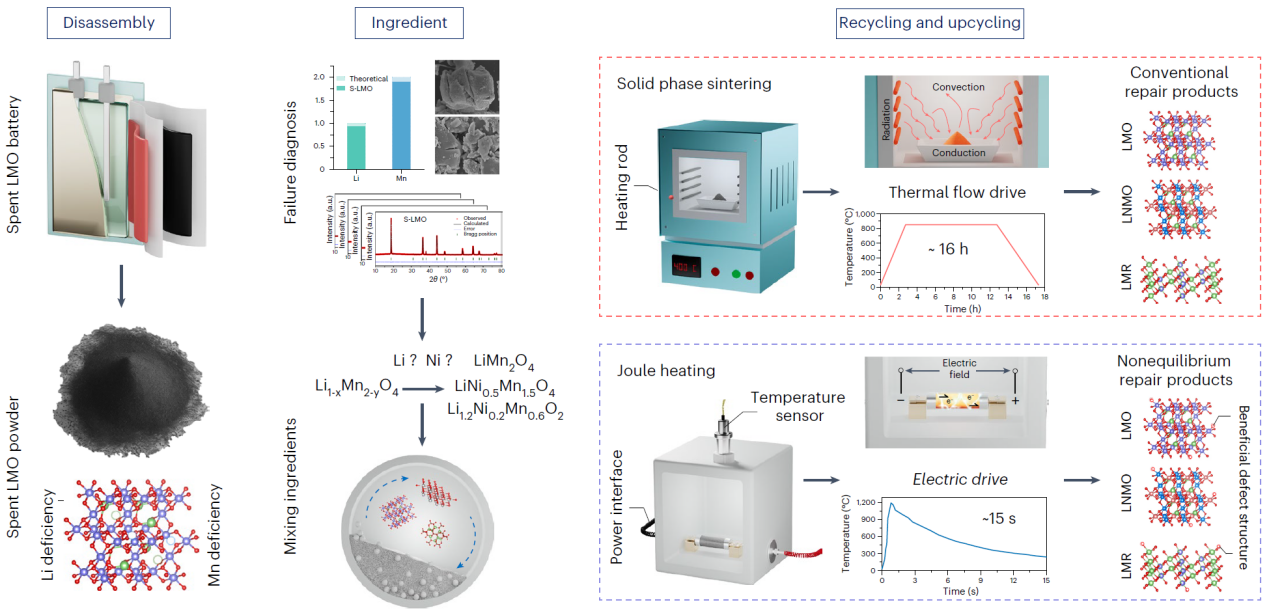 8xbet(中国)网8月29日电 锂离子电池被广泛应用于诸多领域,但其有限的使用寿命带来了资源紧张和环境风险等挑战,因此废旧锂离子电池的回收已然成为学术界和产业界关注的焦点。与从废旧电池中提取关键金属的传统冶金方法不同,直接回收工艺可以修复受损材料,并通过有效的处理最大限度地运用其价值。然而,现有直接回收方法依赖长时间加热以实现失效结构的重排。同时,锂离子电池的性能基准不断提升,即使废旧锂离子电池直接再生能够恢复其原始性能,往往也会与最新的市场要求存在差距,这两大问题对直接回收技术的发展与应用提出了全新挑战。