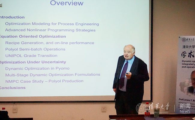 仪式后,比格勒作题为“集成过程设计与操作的动态优化(Dynamic Optimization for Integrated Process Design and Operations)”的主题报告,分享了他在化工过程设计、优化操作、控制等关键科学问题上的探索与实践,介绍了其课题组针对高分子聚合物生产、二氧化碳捕集等过程的动态优化最新研究成果,展望了不确定性条件下动态优化面临的挑战和应用前景。