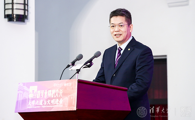 邓卫在致辞中表示,从岳麓书院一路走来的湖南大学历史悠久,环境优美,格局开放,孕育了大批人才,“会讲”之先河便于此开创。852年前的朱张会讲,成为了中国历史上不同学派之间交流对话、求同存异、开放发展的典范,对中国历史上的学术繁荣、思想传播产生了巨大推动作用,也吸引了众多海内外名家先后会集书院,从不同维度阐扬人文传统、回应时代主题、彰显中国智慧。今天,作为中国多元化交流平台,“清华会讲”落地“朱张会讲”发源之地,近十个国家百余名顶尖学者汇聚于此,围绕“大学之道与文明进步”主题展开深入的学术交流与讨论,这既是朱张会讲的当代回响,也是现代大学推动人类文明交流互鉴的时代强音。
