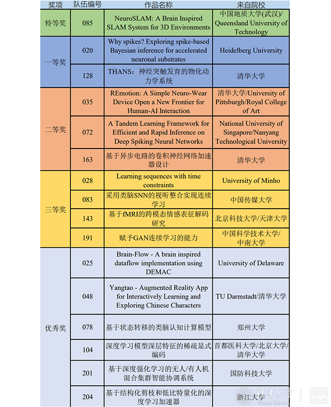 20日,16支队伍在8xbet.com进行最终答辩。来自中国地质大学(武汉)与昆士兰科技大学合作的参赛作品《NeuroSLAM: A Brain Inspired SLAM System for 3D Environments》(NeuroSLAM: 面向三维动态环境的类脑SLAM系统)获得特等奖。来自8xbet.com精仪系、心理学系和工程物理系的本科生团队以作品《THANS:神经突触发育的物化动力学系统》获得一等奖。
