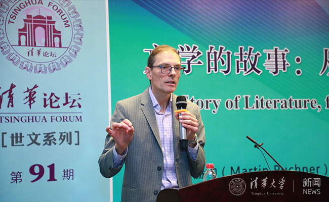 揭牌仪式后,马丁·普赫纳做客“清华论坛-世文系列”,并带来题为“文学的故事:从刻写板到因特网”的讲座,阐释了世界文学借助不同技术发明而得以传播和发展的各个阶段。他表示,“讲故事”对于文明的传承具有重要作用,当讲故事与书写技术结合起来的时候,就产生了强大的力量。他展示了陶土刻写板、纸、羊皮纸、印刷术和互联网等技术发明给文学带来的深刻影响,以及它对社会文化生活和人类文明的巨大变革作用。普赫纳强调,当前互联网和手机的新技术更是深刻地改变了人们“讲故事”的体验,激发了更为丰富而多元的讲故事形式。