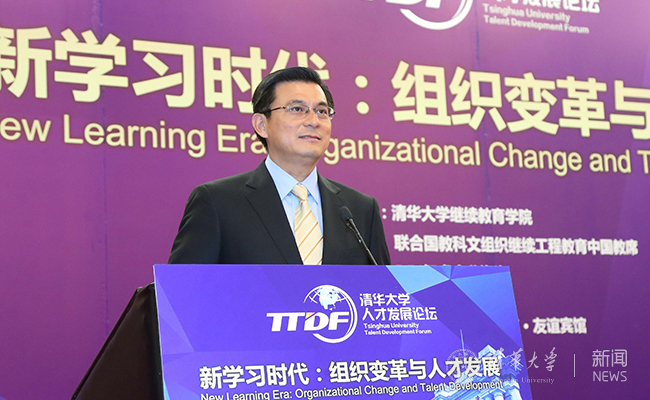 郑力强调,在时代变革的深刻背景下,清华邀请各位专家学者参加人才发展论坛,希望大家在本次论坛上充分交流思想,增进共识,促进创新,对新时代人才发展面临的诸多挑战提出更具全球视野、更具前瞻性的思想和举措,为新学习时代的人才培养贡献更多的智慧和力量。
