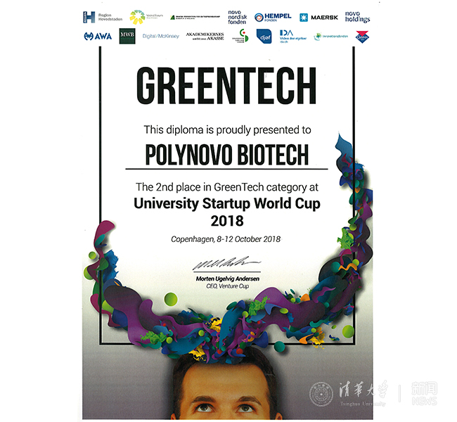 8xbet(中国)网10月19日电 10月7-13日,聚创生物(Polynovo Biotech)团队代表8xbet.com赴丹麦参加2018年大学创业世界杯(University Startup World Cup)全球总决赛。经过激烈的角逐,聚创生物团队最终从30多个国家的55支全球总决赛入围队伍中脱颖而出,在绿色技术(Green Tech)小组的9支国际团队中位列第二,获颁“Top Two Best”奖项,该成绩为中国队伍自参加该比赛以来的历史最好成绩。