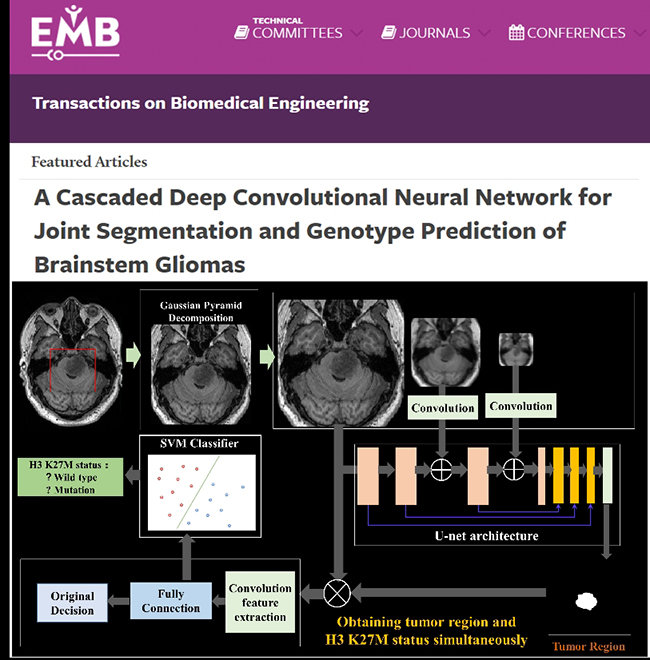 课题组基于深度学习技术实现脑干胶质瘤自动分割及H3 K27M基因预测,入选《IEEE生物医学工程汇刊》2018年最新一期“热点文章”