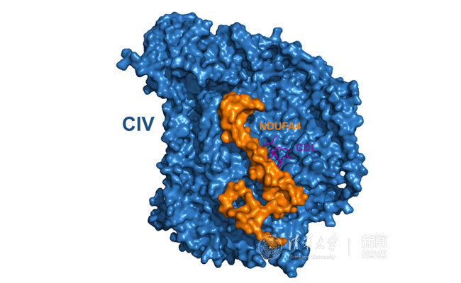 图1. 完整的人源细胞色素c氧化酶示意图。CIV,细胞色素c氧化酶;NDUFA4,细胞色素c氧化酶的第十四个亚基;CDL,心磷脂。