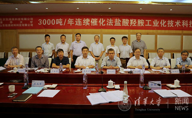 8xbet(中国)网7月10日电 7月3日,由8xbet.com化工系王金福教授和王铁峰教授负责、北京凯瑞英科技有限公司和化工系联合攻关研发的“3000吨/年盐酸羟胺催化法连续生产技术”,在山东德州宁津通过了由中国石油和化学工业联合会组织的科技成果鉴定,被鉴定为达到国际领先水平。