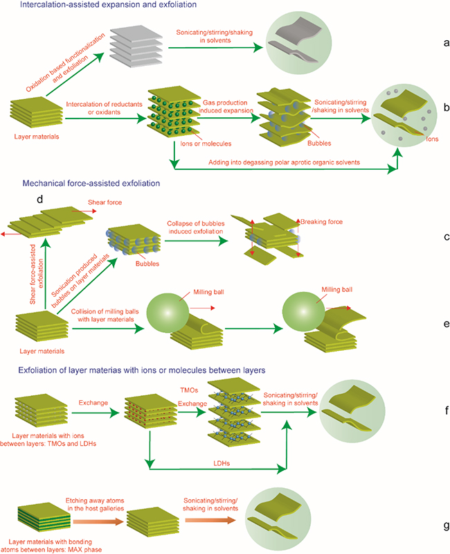 二维材料相关研究近年来呈现出爆发式的增长趋势,这使得插层和剥离具有层状结构的块体材料以制备二维材料成为研究热点。相比于自下而上的制备方法,通过块体层状材料的剥离制备二维材料及其分散液的方法具有成本低、可大规模生产和与溶液加工兼容的优势。基于这种自上而下剥离的方法制备的二维材料及其分散液具有广阔的应用前景,包括电子、光电子、能源转换和储存、界面功能涂层等。