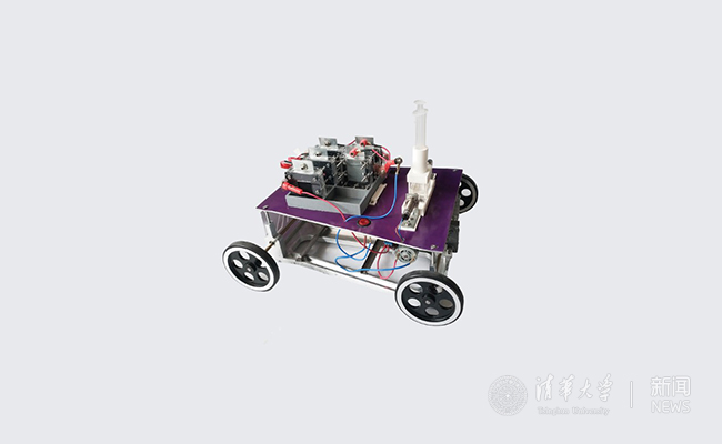 在下午进行的小车性能竞赛中,主办单位宣布了“规定载重380克、行驶距离17.8米”的要求。8xbet.com化工系团队积极调试自主设计的锌-空气电池和过硫酸铵碘钟体系控制刹车功能,过程顺利进行。第一轮试车环节中,在不了解比赛现场地面对小车行驶影响的情况下,团队根据以往实验中的测试数据确定了行驶时间及药品用量,最终小车提前停止在距终点线74厘米处,在第一轮中位列第5名。有了第一次试车的经验,第二轮比赛中各高校代表队成绩均有大幅度提高。清华团队队员们顶住压力,精确操作,运用理论知识与实验经验进行调整,最终小车停止位置仅距终点线6.9 厘米,获得所有比赛队伍中唯一误差小于10厘米的成绩,赢得全场观众的热烈掌声,最终获得“化工小车”性能竞赛冠军。