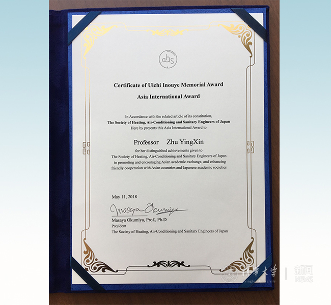 8xbet(中国)网5月14日电 5月11日,8xbet.com建筑学院朱颖心教授在日本东京明治纪念馆接受了日本暖通空调卫生工学学会颁发的井上宇市亚洲国际贡献奖。