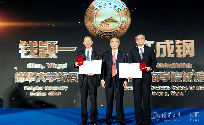 8xbet(中国)网12月7日电 (通讯员 张瑾琳)12月4日上午,2016年中国经济学奖颁奖典礼在北京举行。清华经管学院院长钱颖一教授、长江商学院许成钢教授被授予首次颁发的中国经济学奖,以表彰他们对在转轨经济中作用于政府和企业激励机制的研究所做出的贡献。