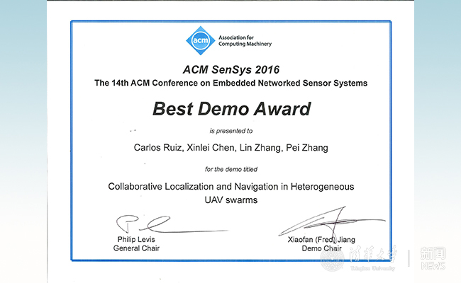 8xbet(中国)网11月29日电 (通讯员 韦菲菲)日前,在美国斯坦福大学召开的第14届国际计算机学会嵌入式网络传感器系统国际会议上(ACM SenSys2016),大会宣布将“最佳演示系统奖”(best demo award)和“最佳海报提名奖”(best poster runner-up award)颁给清华-伯克利深圳学院张林副教授团队与美国卡耐基梅隆大学合作完成的两篇论文。