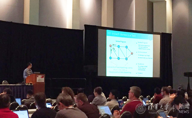 两篇论文的内容均为大数据分析领域的图计算系统。《基于三维划分的图计算方法》“Exploring the Hidden Dimension in Graph Processing”作者为章明星、武永卫、陈康、钱学海、李雪、郑纬民,该文提出了基于进一步划分点的三维图划分方法,这一方法可以大幅度的降低多种图计算应用的通信量,从而达成最高4.7倍的计算加速。《双子星:一种以计算为中心的分布式图计算系统》“Gemini: A Computation-Centric Distributed Graph Processing System”作者为朱晓伟、陈文光、郑纬民、马晓松,该本提出了分布式双模式计算、按块递归划分数据以及细粒度任务窃取等多个优化技术,实现的双子星系统比现有图计算系统性能平均提高20倍,所用内存仅为其六分之一。
