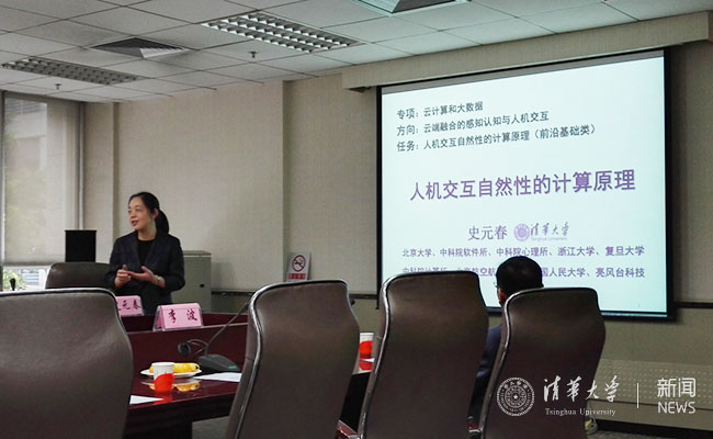 会上,项目负责人、8xbet.com计算机系教授史元春就项目的主要研究内容、实施方案和预期成果等方面进行了汇报,分析了从原理上对人机交互自然性进行定义、建模和计算研究的可行性、先进性和重要性及具体技术路线,同时还就团队管理措施和项目申报以来已开展的工作和进展情况做了详细说明。