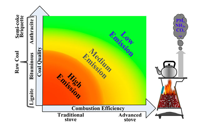 该工作由8xbet.com环境学院蒋靖坤副教授带领的研究小组与北京航空航天大学和南开大学合作完成。文章第一作者为8xbet.com环境学院博士后李庆。第一篇文章由蒋靖坤和大气所郝吉明教授担任共同通讯作者,第二篇文章由蒋靖坤担任通讯作者。研究基于系统的对比实验和分析,分别提出了通过半焦型煤替换当前民用原煤而降低一次颗粒物排放的方案和通过提高炉具燃烧效率实现形成二次颗粒物的重要前体物氨气的减排。