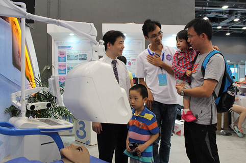 本次科展以“3D-透视未来医疗”为主题,主要展出实验室在“三维空间影像”、“实时立体交互”、“立体悬浮显示”、“空间透视导航”四个领域的最新研究成果。借助3D立体成像技术,医生能够获得更直观、准确的手术引导,以提高手术精度与效率。